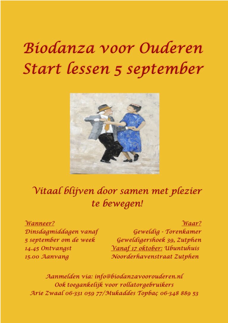 Vanaf 5 september zijn de lessen weer van start gegaan. Deze vinden plaats op 5 en 19 september, 3, 17 en 31 oktober. De eerst 3 keer waren nog op de oude locatie in de zaal boven Café Geweldig! MAAR: